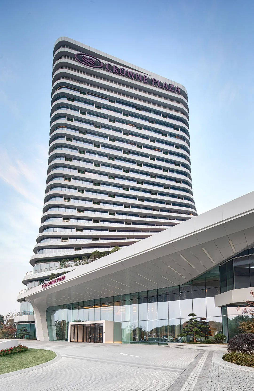 凝視是一種無意識的觸摸。與皇冠假日酒店的第一次對視,你會讀取到清晰的輪廓、升騰的秩序和流暢的線面結構。進入大堂,均質的釉白從穹頂蔓延,蕩出層層硬朗漣漪,向下勻速流動,圍合成弧形墻體,曲面廊梯。
