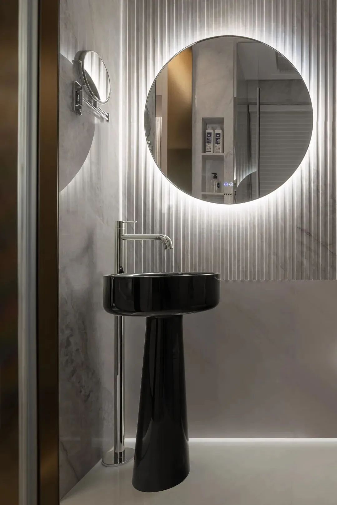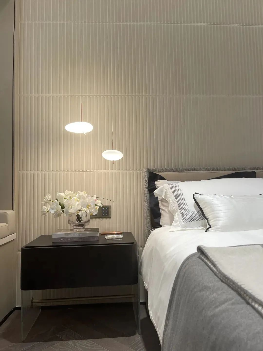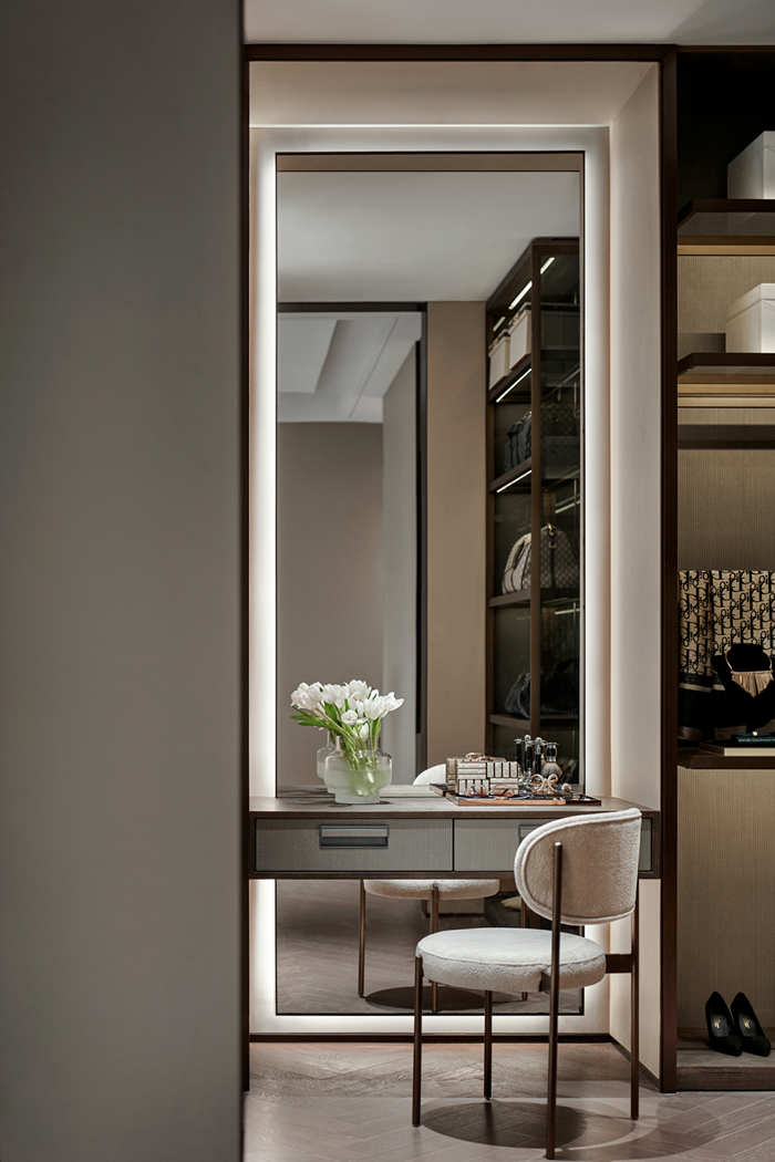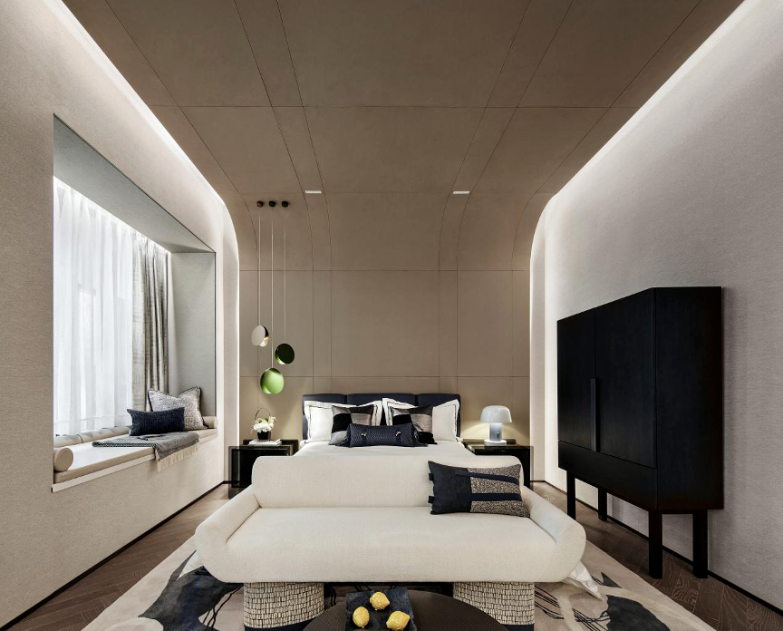 環(huán)視所見,硬朗與柔軟、方正與圓潤、明與暗……交融共舞。這一切背后都源于設(shè)計師對室內(nèi)感受和細節(jié)質(zhì)感的精準(zhǔn)拿捏。