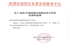 我會在2020年福田轄區(qū)商協(xié)會活力評估活動中榮獲第36名!