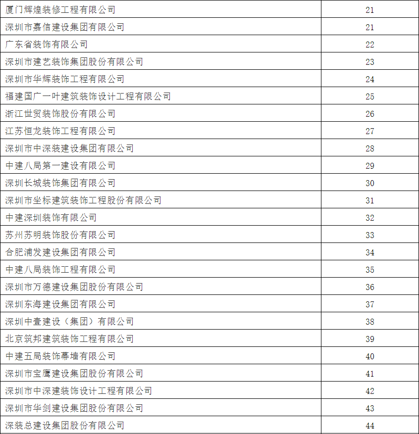 2020年度行業綜合數據統計工作分為裝飾、幕墻、設計三類,現將2020年度建筑裝飾行業數據統計結果名單予以公示。
