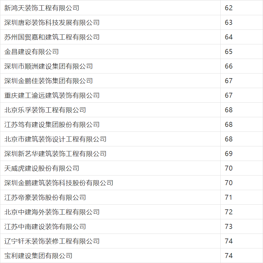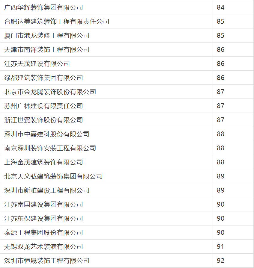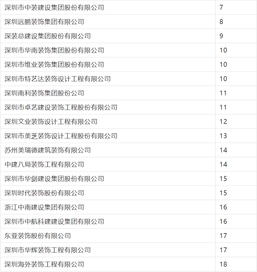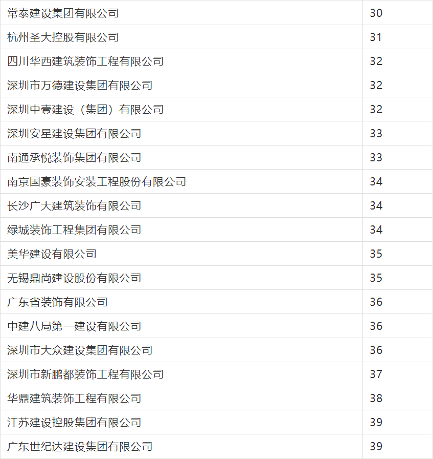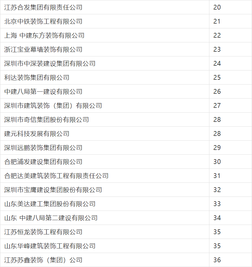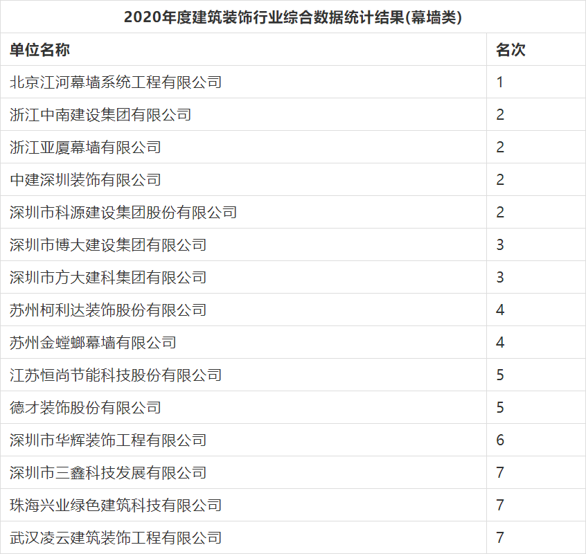 2020年度行業綜合數據統計分為裝飾、幕墻、設計三類,現將2020年度建筑裝飾行業數據統計結果名單予以公告。