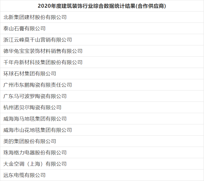 2020年度建筑裝飾行業綜合數據統計結果公告