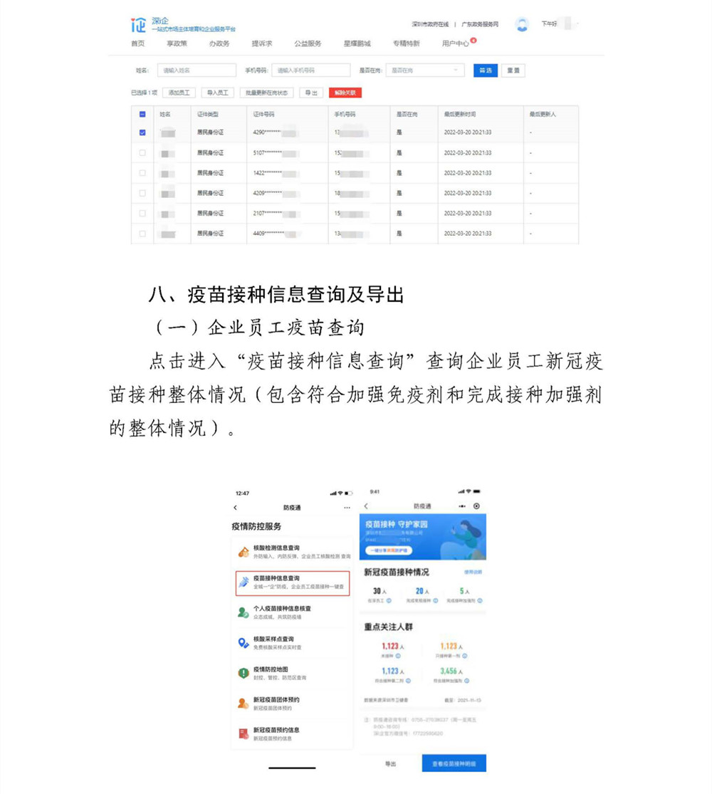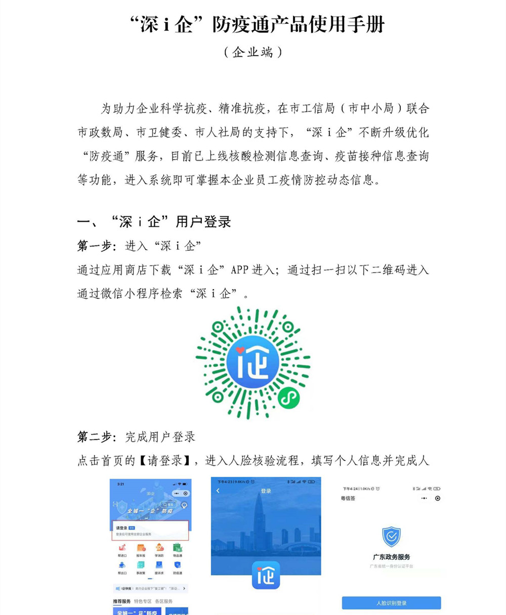 為助力企業科學抗疫、精準抗疫,在市工信局(市中小局)聯合市政數局、市衛健委、市人社局的支持下,“深i企”不斷優化“防疫通”服務,目前已上線核酸檢測告警系統、核酸檢測信息查詢、疫苗接種信息查詢、市區政策查詢等功能,無需企業投入精力開展管理工作,進入系統即可掌握本企業員工疫情防控動態信息,助力企業恢復生產,保雙鏈、穩增長。