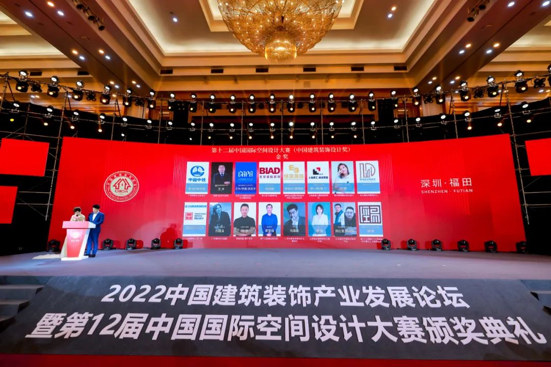 11月15日,2022中國建筑裝飾產業發展論壇暨第十二屆中國國際空間設計大賽頒獎典禮在深圳福田五洲賓館圓滿舉辦。