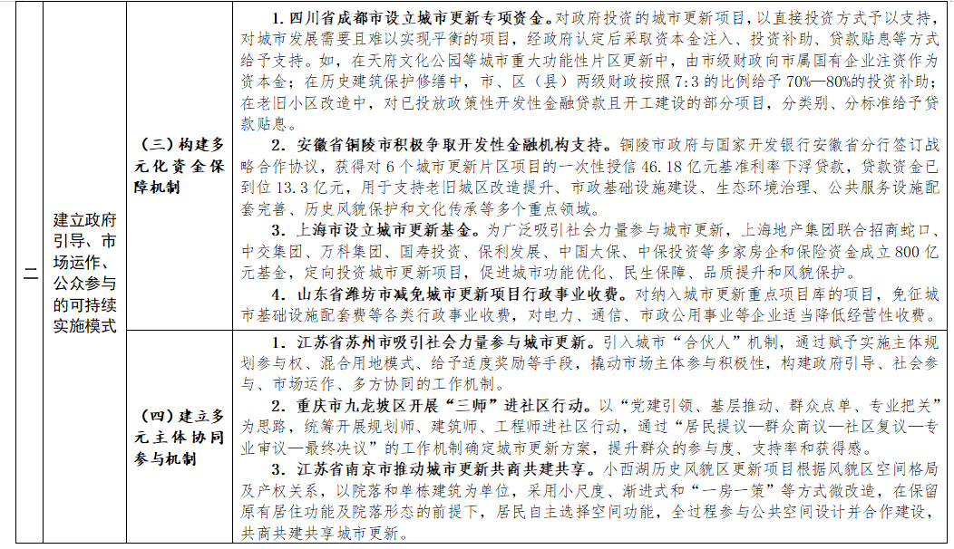 近日,住房和城鄉(xiāng)建設(shè)部總結(jié)城市更新試點(diǎn)城市和各地經(jīng)驗(yàn)做法,印發(fā)《實(shí)施城市更新行動(dòng)可復(fù)制經(jīng)驗(yàn)做法清單(第一批)》。