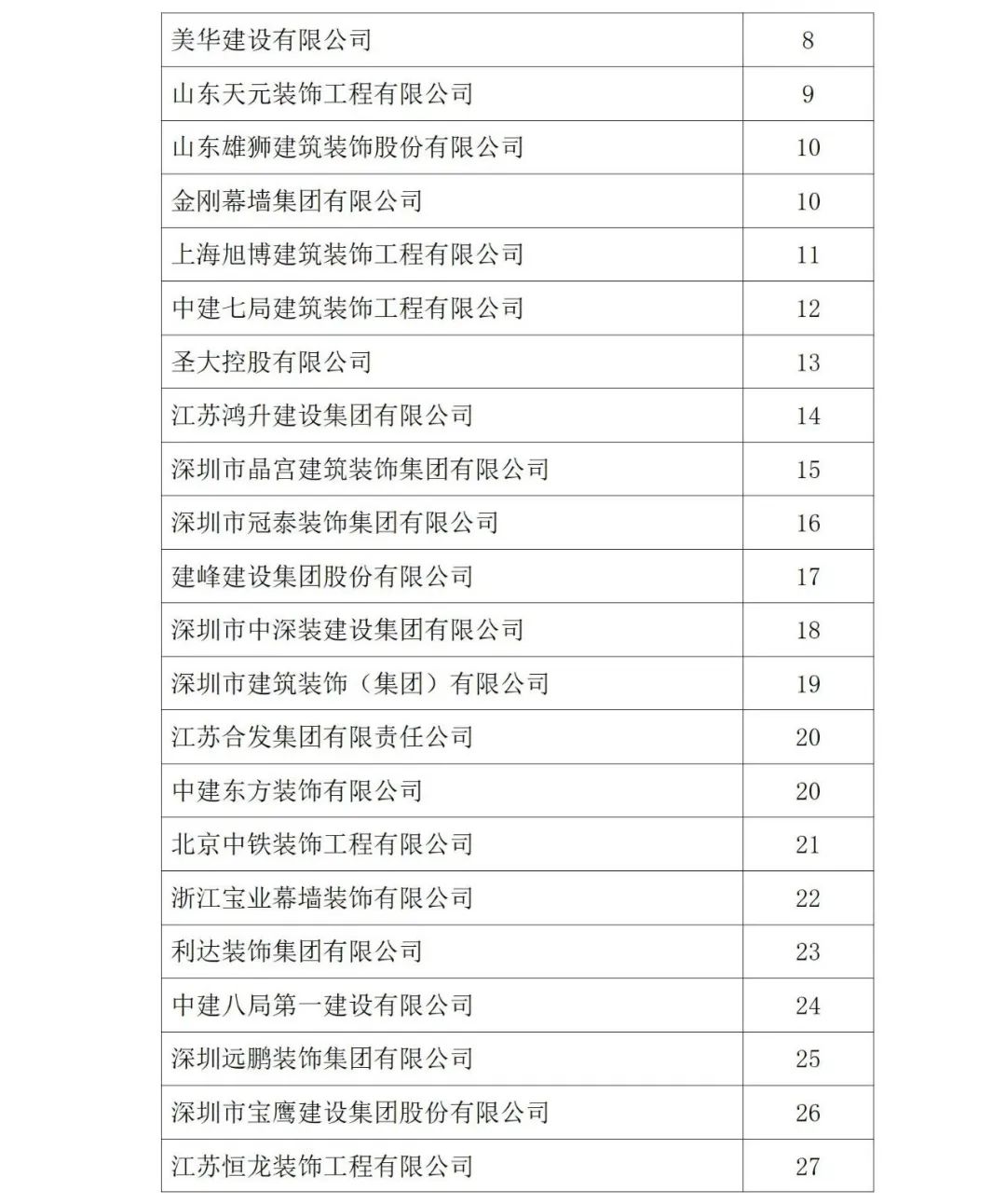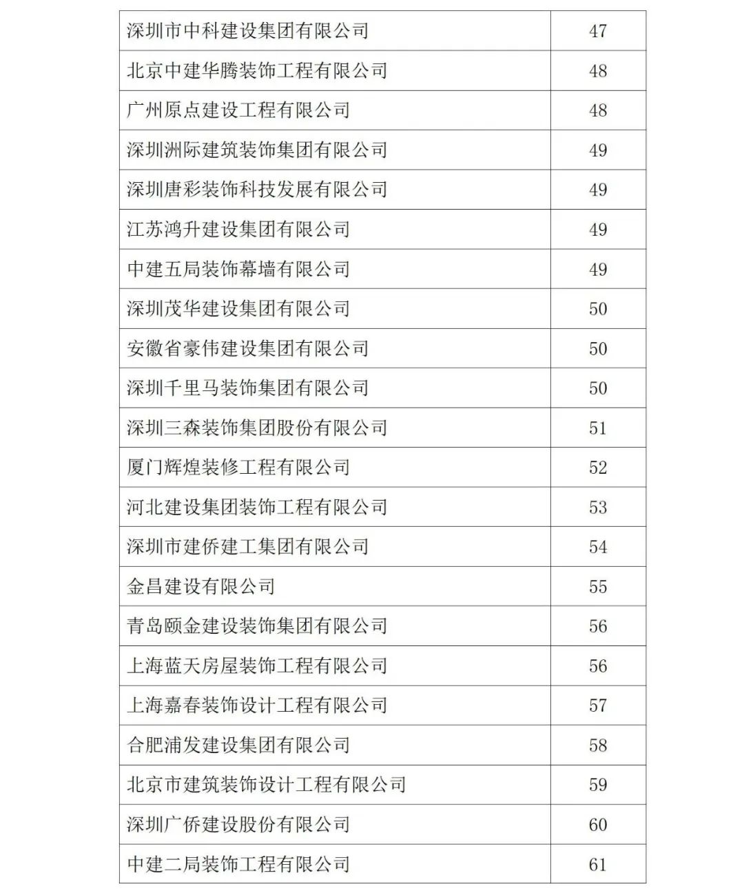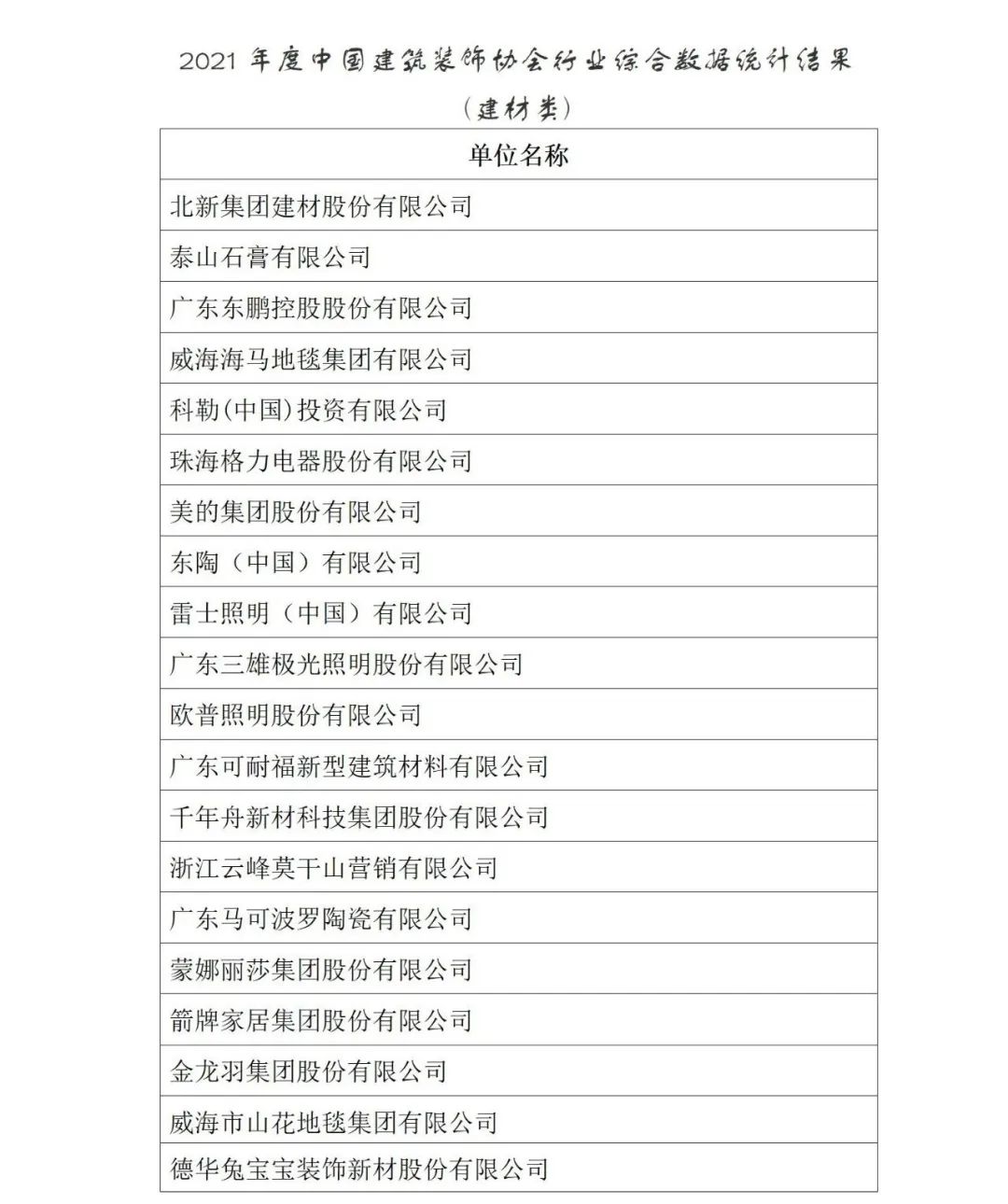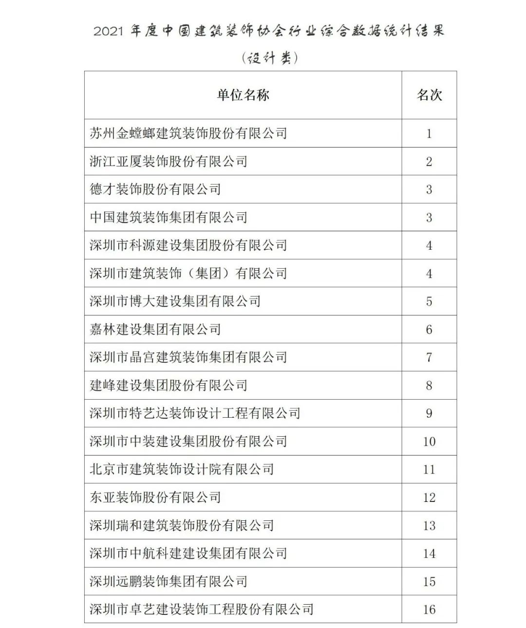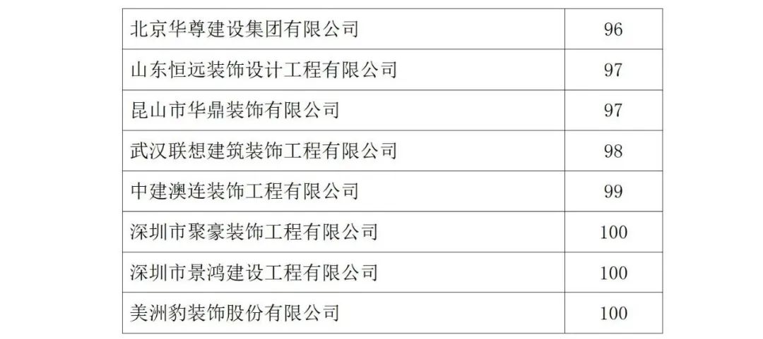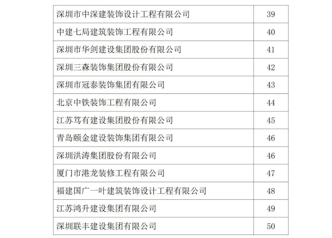2021年度中國建筑裝飾協會行業綜合數據統計結果最終全名單公布