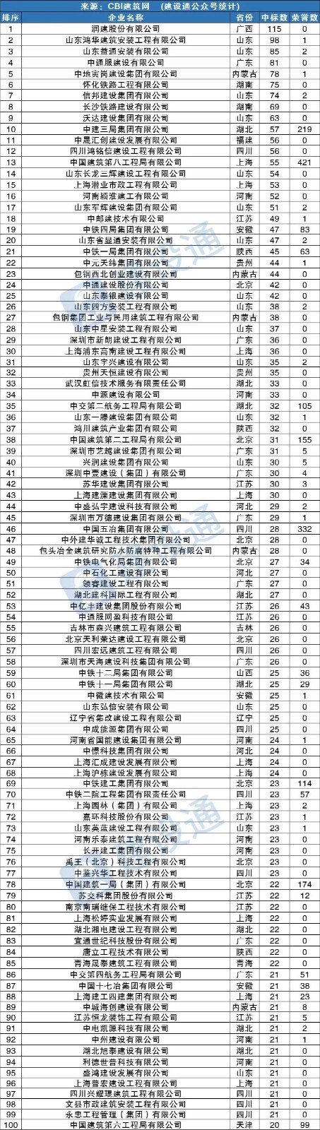 全國6月建企中標100強出爐,藝越、中壹、萬德位列榜單