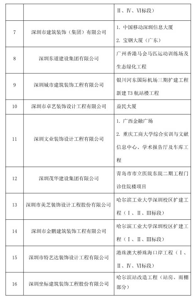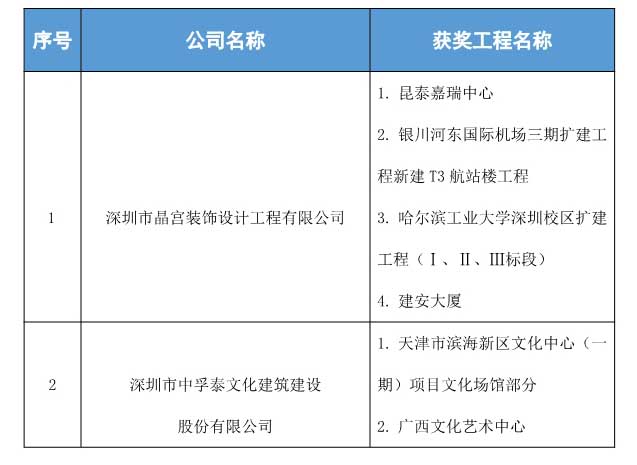 2019年12月10日,由中國建筑業(yè)協(xié)會(huì)主辦的建筑業(yè)科技創(chuàng)新暨2018-2019年度中國建設(shè)工程魯班獎(jiǎng)(國家優(yōu)質(zhì)工程)表彰大會(huì)在北京隆重召開,會(huì)上表彰241項(xiàng)魯班獎(jiǎng)工程,福田區(qū)共17家建筑裝飾企業(yè)榮獲此項(xiàng)中國建筑行業(yè)工程質(zhì)量的最高榮譽(yù),充分彰顯了福田區(qū)在中國建筑裝飾行業(yè)中的領(lǐng)先地位。
