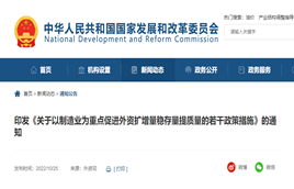 10月25日,發改委等六部門印發《關于以制造業為重點促進外資擴增量穩存量提質量的若干政策措施》的通知。