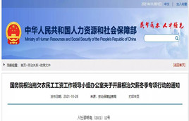 近日,國務院根治拖欠農民工工資工作領導小組辦公室下發通知,決定從2021年11月1日至2022年春節前,在全國組織開展根治欠薪冬季專項行動。