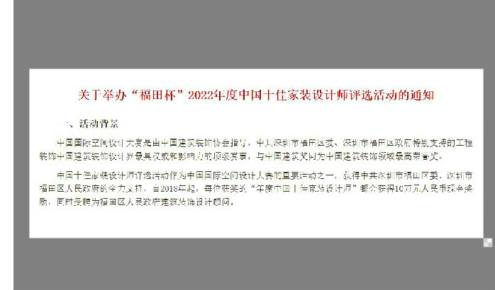 關于舉辦“福田杯”2022年度中國十佳家裝設計師評選活動的通知